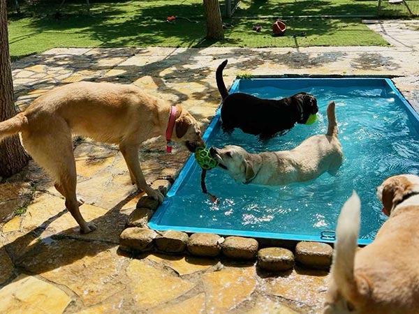 Στο I Love Dogs μεγάλοι εξωτερικοί χώροι με πισίνες, οργανωμένα playground και ομάδες συμβατών σκύλων προσφέρουν καθημερινό παιχνίδι, άσκηση και κοινωνικοποίηση.