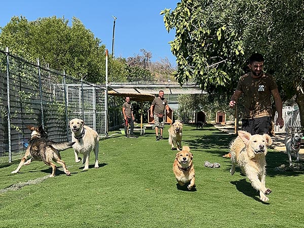 Οι σκύλοι φιλοξενούνται σε ειδικά διαμορφωμένους χώρους, με συνεχή επίβλεψη, οργανωμένο πρόγραμμα και ανθρώπους που βρίσκονται διαρκώς παρόντες.